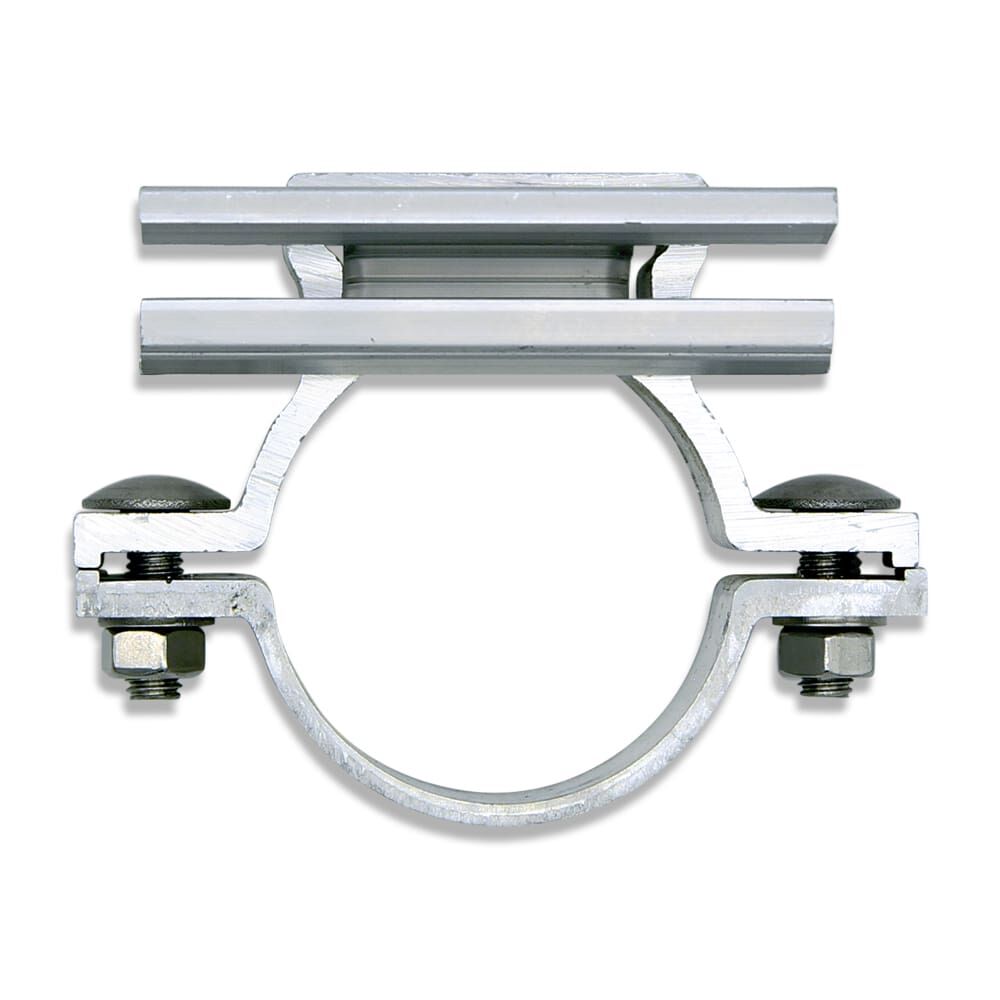 Klemmschelle zur Befestigung von Verkehrszeichen in Alform an Rohrpfosten, Einfachschelle für die Seitenaufstellung