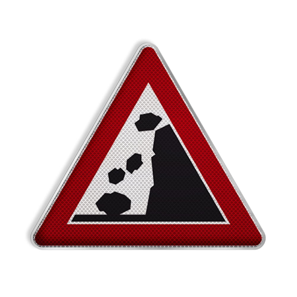 Produktinformationen "VZ 101-15 Steinschlag, Aufstellung rechts RA 3 SL 900 mm Alform"