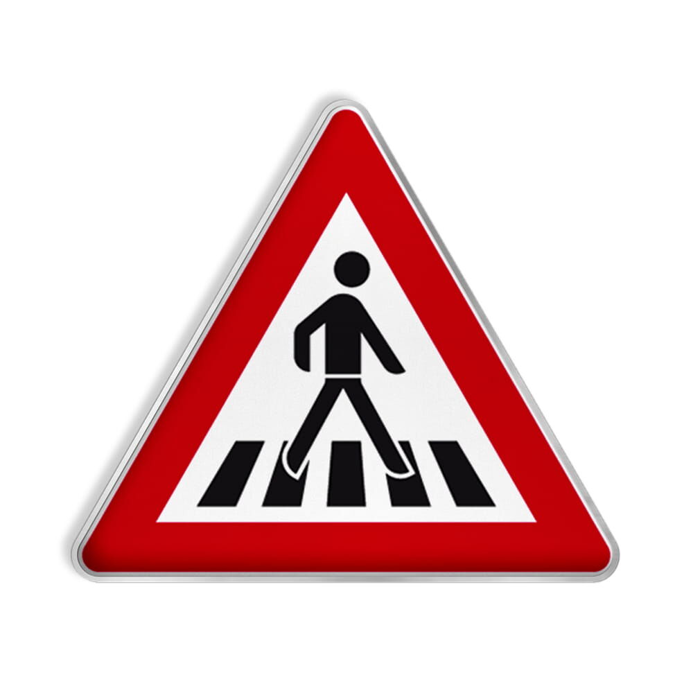 Produktinformationen "VZ 101-10 Fußgängerüberweg, Aufstellung rechts RA 1 SL 630 mm Alform"