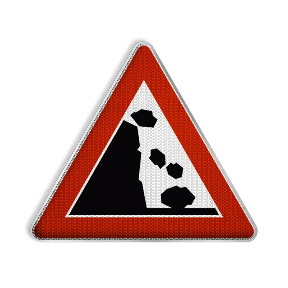 Produktinformationen "VZ 101-25 Steinschlag, Aufstellung links RA 2 SL 630 mm Alform"