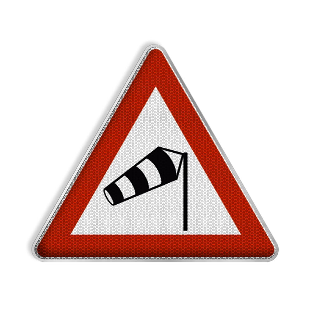 Produkteigenschaften Verkehrsschild Seitenwind von rechts VZ 117-10