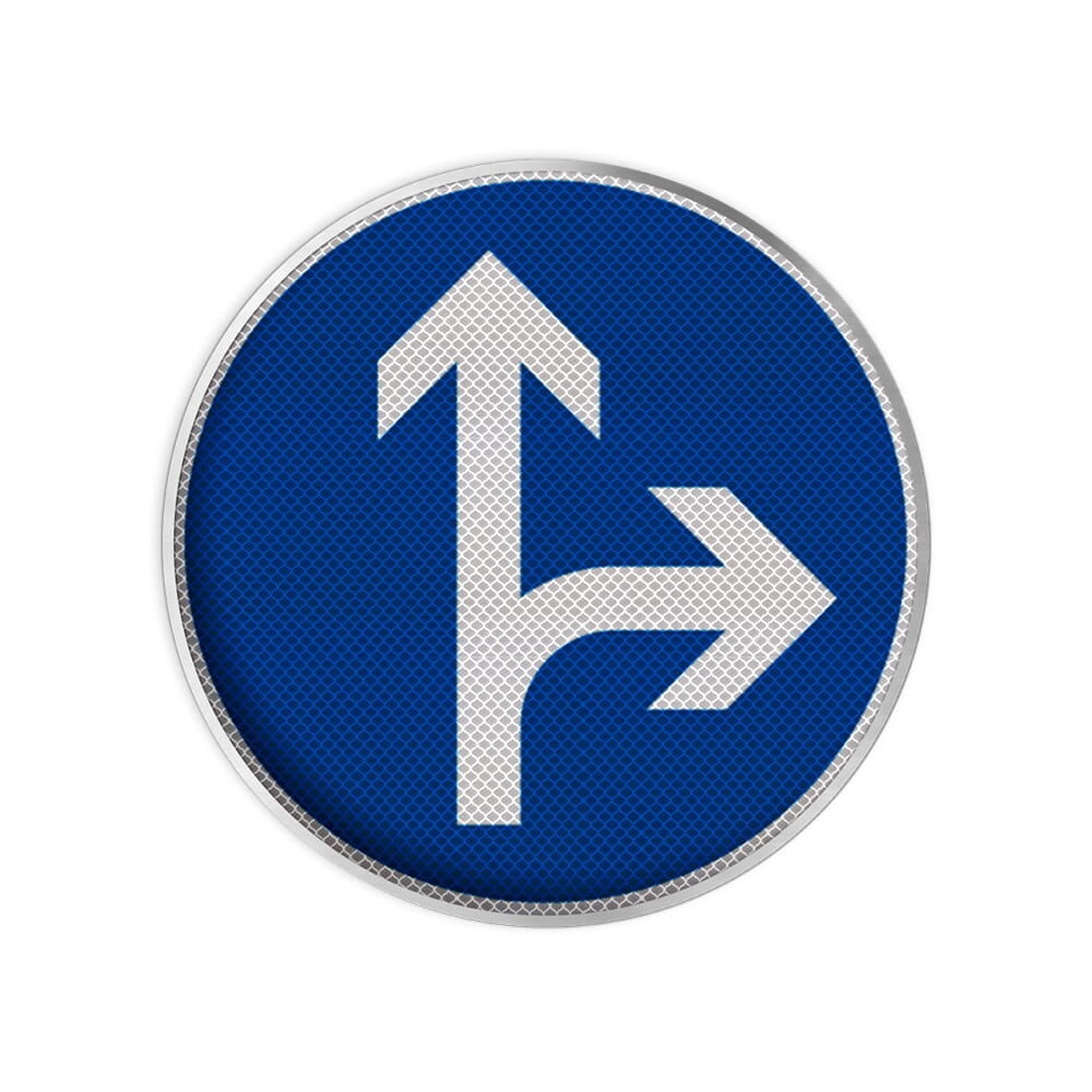 VZ 214 Vorgeschriebene Fahrtrichtung geradeaus oder rechts RA 3 Ø 600 mm Alform