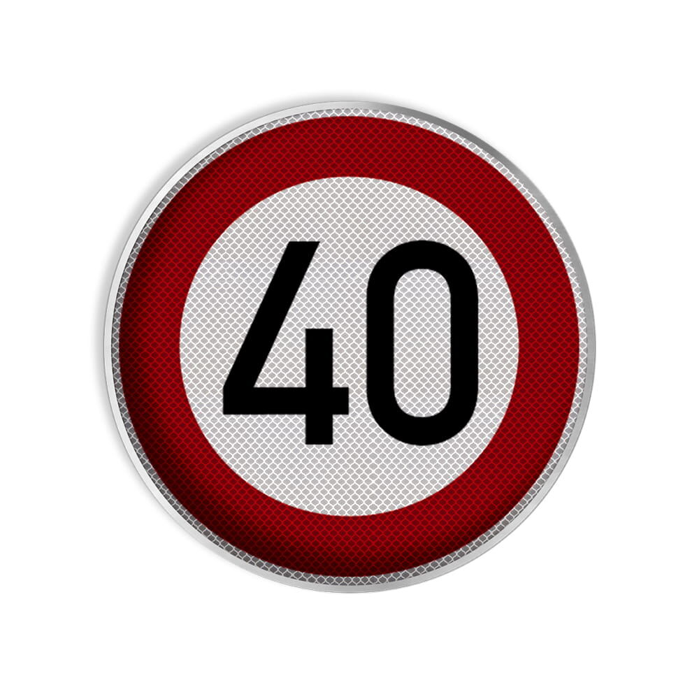 | Größe des Verkehrsschildes | Ø 420 mm Größe 1 = 70% | Ø 600 mm Größe 2 = 100% | Ø 750 mm Größe 3 = 125% |