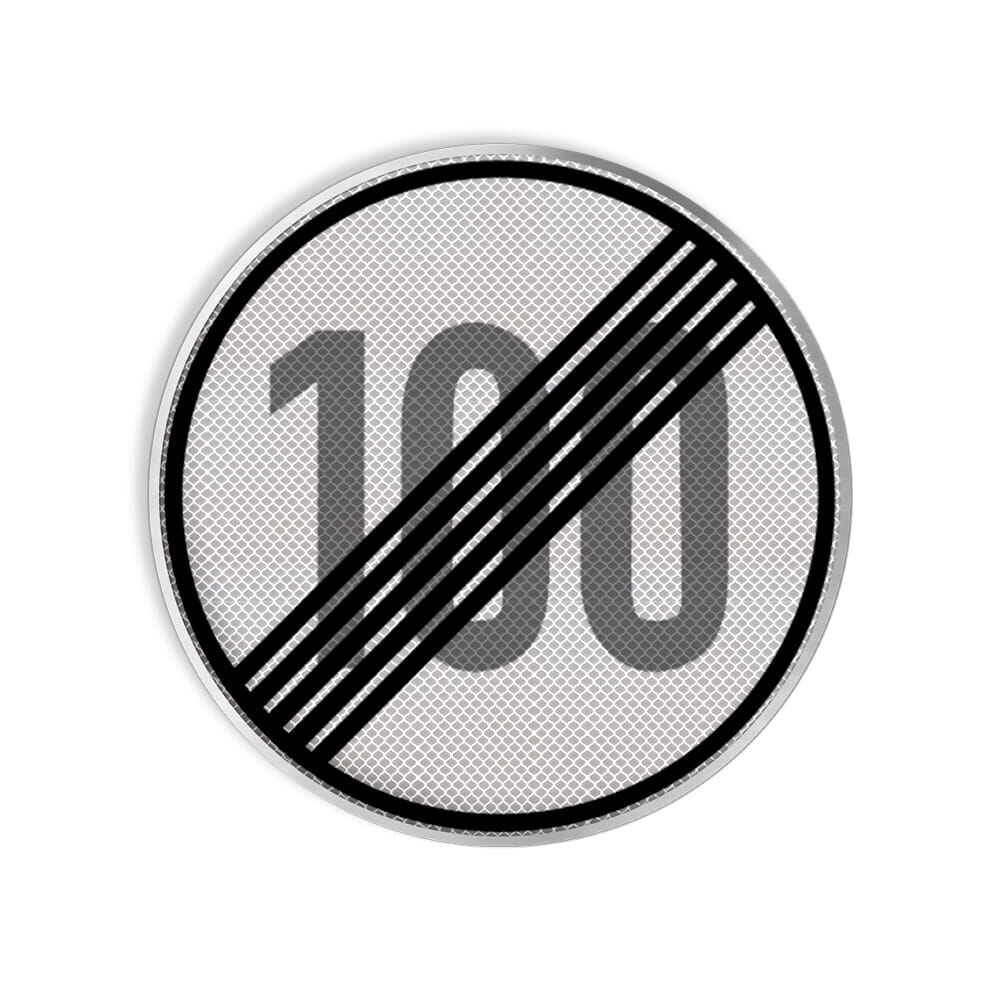 VZ 278-100 Ende der zulässigen Höchstgeschwindigkeit 100 km/h RA 3 Ø 750 mm Alform