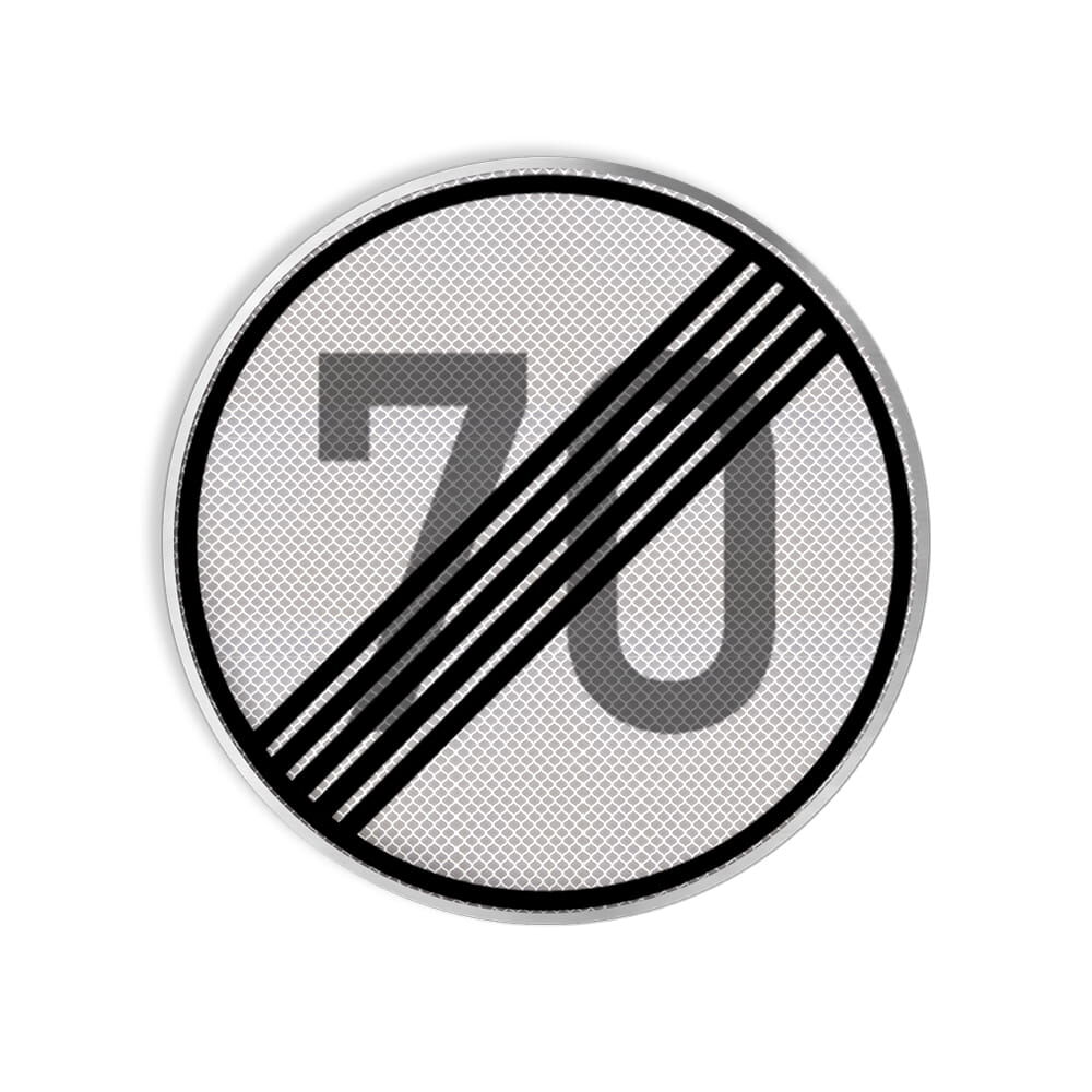 VZ 278-70 Ende der zulässigen Höchstgeschwindigkeit 70 km/h RA 3 Ø 600 mm Alform